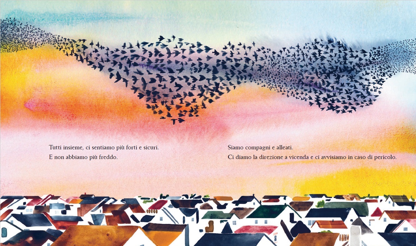 Un albo illustrato che intreccia poesia e sguardo scientifico, e restituisce la complessità e la bellezza del movimento collettivo, là dove migliaia di individui diventano un unico gesto.