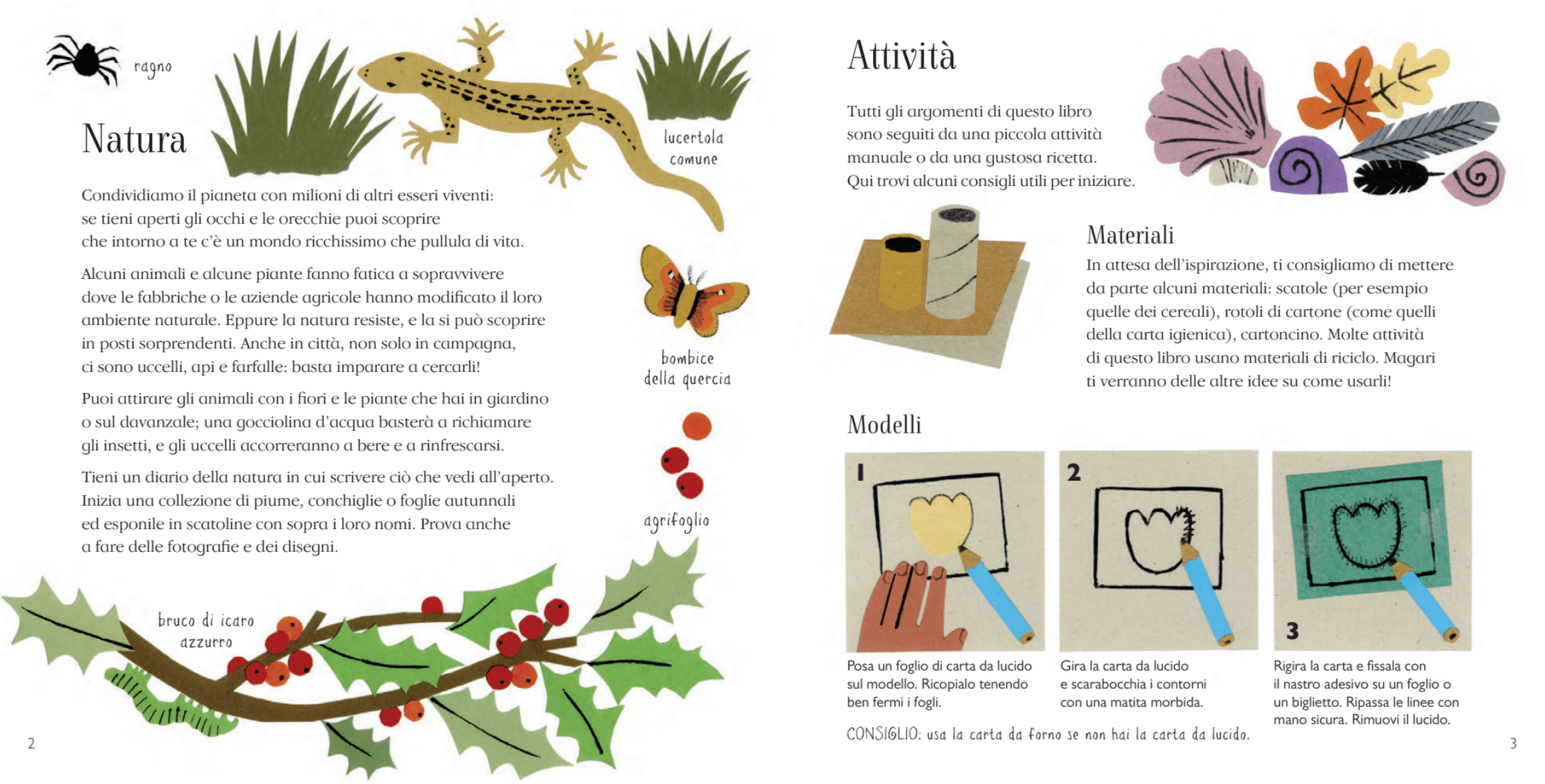 Un bellissimo albo illustrato con attività creative ispirate alla natura! Fiori, insetti, alberi, fiocchi di neve, animali, habitat: per ogni argomento, un'attività manuale o una ricetta da sperimentare. Adulti e bambini vengono coinvolti in attività ecologiche, all'aperto o in casa.