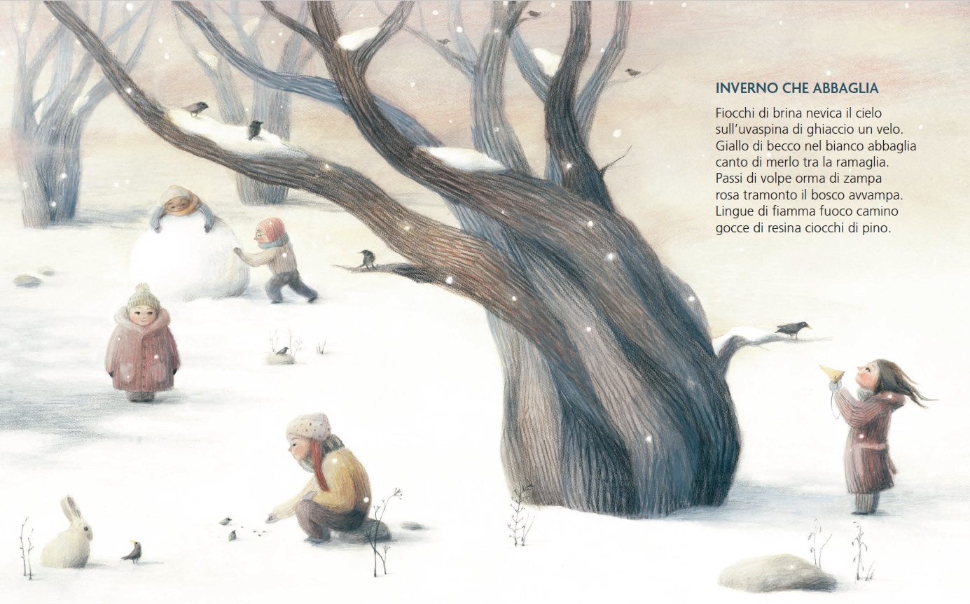 Ogni stagione è caratterizzata da colori, rumori, gusti, odori. Sensazioni da assaporare, conoscere e apprezzare, per tutte le cose belle che ciascun periodo dell’anno può offrire. Per i bambini non esiste modo più semplice e divertente che farlo attraverso le filastrocche. Nelle tavole di questo albo illustrato, i testi di Chiara Lorenzoni e gli elementi dell’immaginario di Francesca Dafne Vignaga suonano all’unisono, consegnando al lettore un tesoro di esperienze lunghe un anno.