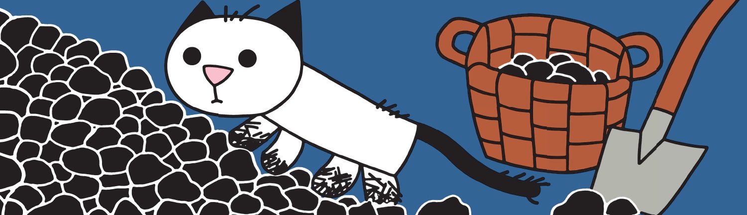 Un gatto bianco si rifugia in una fattoria dove trova qualcosa da mangiare: ma è il cibo del cane di casa che, scoprendolo, gli mostra i denti e lo scaccia via. Impaurito, il gatto trova riparo in una cantina. Al buio, il povero felino si avventura tra cataste di carbone, ragni, topi e pipistrelli: e così finisce sporco e spelacchiato… da far paura. Ecco che, uscito dalla cantina, incontra nuovamente il cane: adesso è lui a scappare a zampe levate!