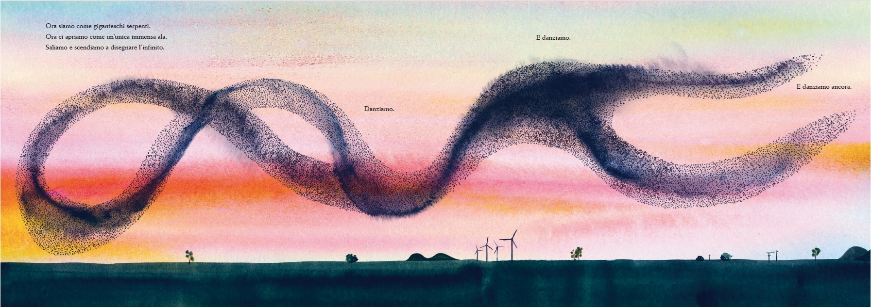 Un albo illustrato che intreccia poesia e sguardo scientifico, e restituisce la complessità e la bellezza del movimento collettivo, là dove migliaia di individui diventano un unico gesto.